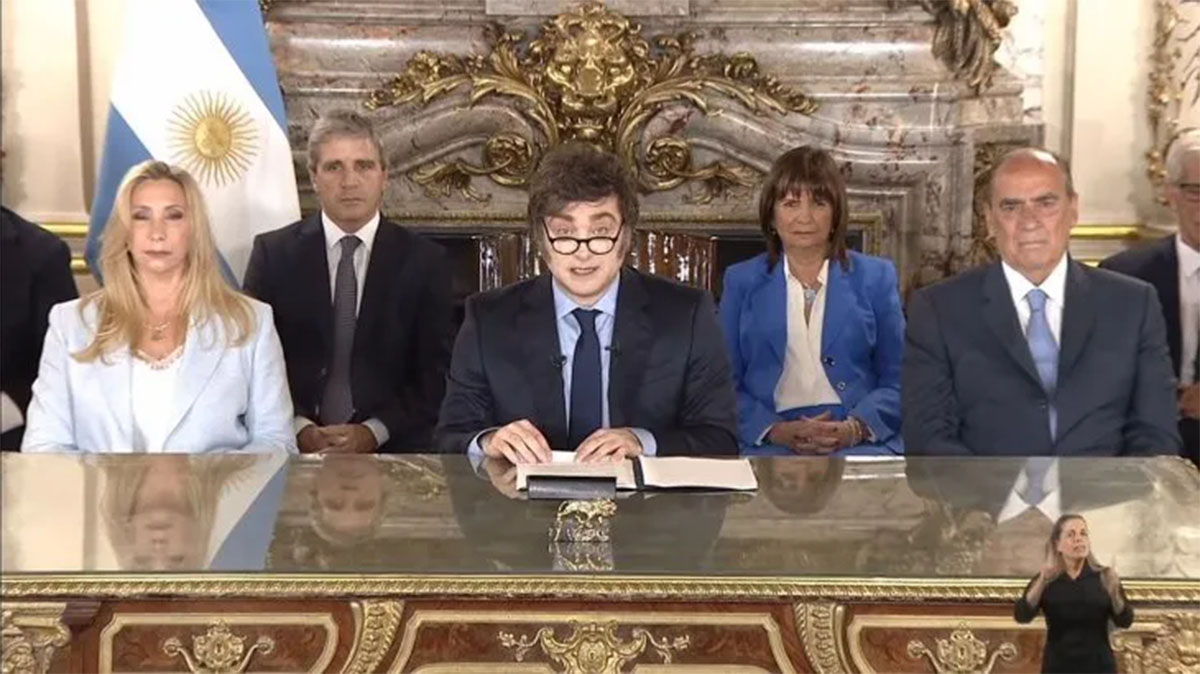 Desde las 21 horas, se emitió un mensaje grabado por cadena nacional en donde el Presidente de la Nación, Javier Milei, realizó un informe de su primer año gestión y remarcó las prioridades que tiene su administración para el 2025. Rodeados de los miembros del Gabinete del Poder Ejecutivo, ratificó que “hemos hecho la reforma estructural más grande de la historia“.